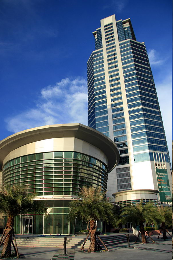 Consists of a commercial office tower, a residential tower and a podium housing a shopping mall which connects the two.