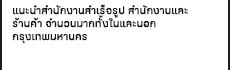 ค้นหาออนไลน์เพื่อเช่าอสังหาริมทรัพย์ (ที่พักอาศัยสำนักงานคลังสินค้าโรงงาน) ในประเทศไทยดำเนินการโดย บริษัท ของเรา คลิกที่วิธีการค้นหาที่ต้องการสำหรับ "ที่อยู่อาศัย", "สำนักงาน" หรือ "โรงงาน / โกดัง" จากปุ่มด้านล่าง